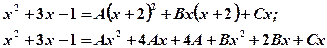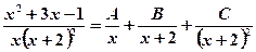 To find unknown coefficients we reduce the fractions of the right side of last equation to the common denominator and equate numerators of both sides of the equation.