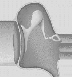 Рис. 7.9. Среднее ухо. Внутренняя область среднего уха называется барабанной полостью. В барабанной полости находится система так называемых слуховых косточек, состоящая из молоточка, наковальни и стремени. Эти косточки связаны между собой в единую подвижную цепь, состоящую из рычагов. Задача системы слуховых косточек заключается в передаче звуковых колебаний от барабанной перепонки в область внутреннего уха. Внутреннее ухо ответственно за преобразование звуковых колебаний в электрические импульсы.Внутреннее ухо заполнено жидкостью. Оно состоит из двух частей: вестибулярного аппарата и улитки. Свое название улитка получила из-за своей формы — улитка свернута спирально, наподобие раковины обычной улитки. Улитка разделена эластичной перегородкой (мембраной) на два канала, заполненных жидкостью. В этой перегородке находятся чувствительные волосковые клетки и нервные клетки, которые передают сигналы с волосковых клеток в мозг.