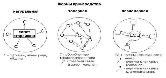 Итак, планомерная форма производства – такая организация общественного производства, где преобладает планомерная, непосредственно общественная связь субординации, вертикальная: основная от центра к относительно обособленным хозяйствующим субъектам; дополнительная – от хозяйствующих субъектов к центру. Представляется внешне, что натуральная и планомерная формы тождественны. Однако они принципиально различаются, прежде всего, по форме соединения производства и потребления. В условиях планового хозяйства в рамках одной производственной единицы производство и потребление не совпадают. В этом отношении плановое хозяйство тождественно товарному хозяйству, где производство и потребление отделены друг от друга и представлены разными хозяйственными единицами. Продукт, производимый одной из них, потребляется в другой. Но если в товарном хозяйстве связь между производством и потреблением устанавливается путем частных контактов производителей и потребителей, то коренной признак планового хозяйства как раз и заключается в том, что установление связей между производством и потреблением осуществляется обществом. Оно организует производство и заранее соединяет производство и потребление разных и разнородных производственных единиц. Плановое хозяйство предполагает непосредственно общественную, планомерную связь между производством и потреблением в масштабе всего общественного производства, а не в масштабе только одной производственной единицы.