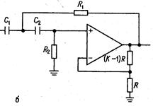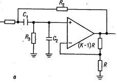 (а) фильтр нижних частот, (б) фильтр верхних частот, (в) полосовой фильтр