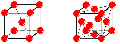 Железо (Fe) имеет температуру плавления 1539 ºC. В твердом состоянии испытывает два полиморфных превращения. Важнейшее из них – превращение при 911 ºC. Ниже этой температуры железо имеет объемно-центрированную кубическую решетку (ОЦК) с параметром a = 0,286 нм (рис. 62, а). Это α-железо (Feα). Выше 911 ºC существует γ-железо (Feγ) с гране-центрированной кубической решеткой (ГЦК) и параметром a = 0,364 нм (рис. 62, б). а б Рис. 62. Кристаллическая решетка a-железа (а) и g-железа (б)