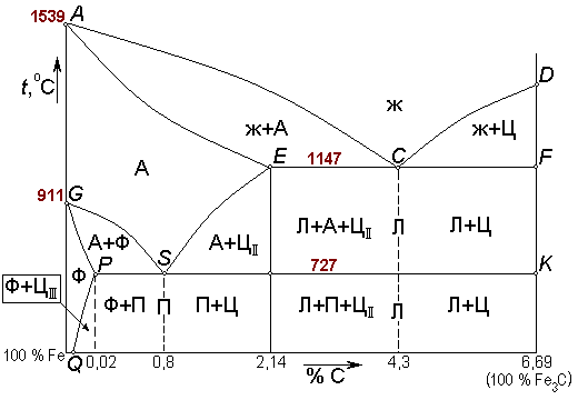 Рис. 64. Диаграмма состояния железо – цементит
