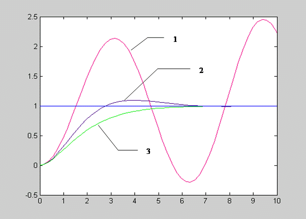 Figure 3.2. Time characteristic: 1- oscillation, 2- overshooting, 3- normal reaction