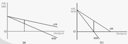 The MR values have a relation with the price elasticity of demand. It is sufficient to notice only one aspect – price elasticity of demand is more than 1 when the MR has a positive value, and becomes less than the unity when MR has a negative value. As the quantity of the commodity increases, MR value becomes smaller and the value of the price elasticity of demand also becomes smaller. Recall that the demand curve is called elastic at a point where price elasticity is greater than unity, inelastic at a point where the price elasticity is less than unity and unitary elastic when price elasticity is equal to 1.