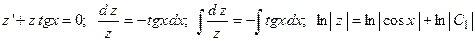 Потенциируя полученное равенство находим, что . Разделяя переменные и интегрируя, получим