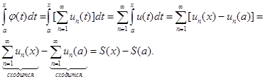 Таким образом, равномерно сходящийся ряд можно почленно интегрировать, причем проинтегрированный ряд будет сходиться. Имеем: