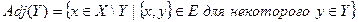 Два узла из графа называются смежными, если . Если , то смежное множество для есть