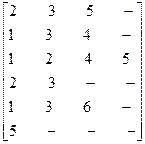 Одной из наиболее простых схем хранения графа является таблица связей - двумерный массив, который имеет строк и столбцов, где — максимальная степень вершин в . Список смежности го узла сохраняется в ой строке. Для графа, приведенного на рис.3, таблица связей будет иметь вид: