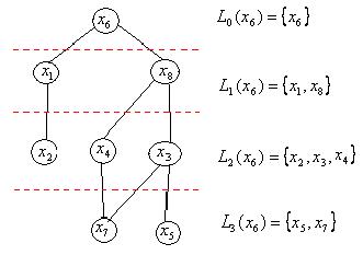 На рис.6 показана корневая структура уровней для графа, приведенного на рис.5. Корень находится в узле