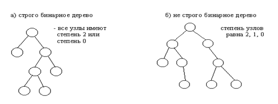 Строго бинарное дерево состоит только из узлов, имеющих степени два (2) или нуль (0). Таким образом, строго бинарное дерево может быть как полным, так и неполным.