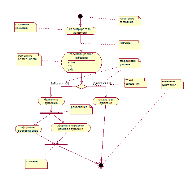 Рис. Пример диаграммы деятельности с параллельными потоками.