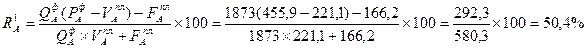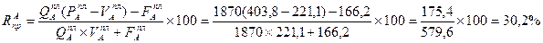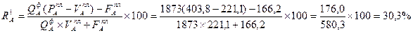 Затем рассчитывается условная рентабельность продукции по изделию А -