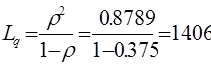 Отже, даний режим контролю неможливий, оскільки черга буде інтенсивно і неперервно зростати. Якщо модернізувати контрольне устаткування і підвищити пропускну спроможність устаткування вдвічи: m = 1.6: r = 1.5 /1.6 = 0.9375 < 1. Оскільки у системі будуть перевірятися усі 100% виробів, тому параметри відносної та абсолютної пропускної здібності втрачають зміст. Середня довжина черги (середня кількість виробів, що очікують поки контролер звільниться) розраховується за формулою (1.26):