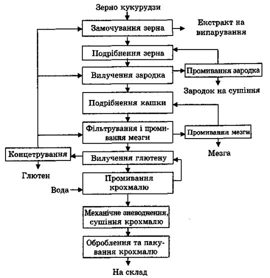 Рис. 7.4. Узагальнена функціональна схема виробництва кукурудзяного крохмалю