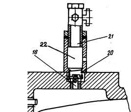 Дроссель с импульсной колонкой В РДБК-1 имеется три дросселя. Первый дроссель (19) установлен при подаче газа из пилота в подмембранную полость мембранной камеры исполнительного узла. Второй дроссель (18) установлен между импульсной колонкой (22) и верхней чугунной тарелкой мембранной камеры исполнительного узла. Третий дроссель (17) установлен на сбросной трубке. Работа регулятора РДБК-1. Предположим, что регулятор работает в нормальном режиме. Оператор выключил несколько котлов и давление газа после регулятора повысилось вследствие уменьшения расхода. Это повышенное давление из выходного ГП по импульсной трубке (32) поступит в импульсную колонку (21). Оттуда одновременно газ пойдет по двум направлениям: 1. Через дроссель (18) в надмембранную полость мембранной камеры исполнительного узла. 2. По импульсной трубке (29) это повышенное давление поступит в надмембранную полость пилота. Мембрана пилота при этом несколько прогнется вниз, через шток приблизит золотник к седлу крестовины, уменьшит проход и давление газа, которое по импульсной трубке (16) через дроссель (19) поступит в подмембранную полость мембранной камеры исполнительного узла. Давление под мембрану пришло пониженное. Из пилота вышло тоже пониженное. Из под мембраны мембранной камеры исполнительного узла пониженное давление газа по импульсной трубке (28) поступит в подмембранную полость стабилизатора. При этом мембрана стабилизатора за счет силы пружины над золотником прогнется вниз, приблизив золотник к седлу крестовины стабилизатора и уменьшит проход и давление газа, поступающее по импульсной трубке (25) на пилот. Т.е. давление газа на входе в пилот несколько уменьшилось, но на выходе из пилота оно тоже было уменьшено, поэтому Р1-Р2 = const. (т.е. осталось постоянной величиной). Повышенное давление газа поступившее через дроссель (18) в надмембранную полость, прогнет мембрану вниз и через шток приблизит клапан к седлу корпуса исполнительного узла, уменьшив проход и давление газа потребителю до значения, заданного пилотом изначально. При уменьшении давления газа за регулятором вследствие увеличения расхода газа потребителям это пониженное давление газа по импульсной трубке (23) поступит в импульсную колонку (21), откуда одновременно пойдет по двум направлениям: 1. Через дроссель (18) в надмембранную полость мембранной камеры исполнительного узла. 2. Из импульсной колонки (21) по импульсной трубке (29) это пониженное давление поступит в надмембранную полость пилота. Мембрана пилота под действием силы регулировочной пружины прогнется вверх, через шток приподнимет золотник над седлом крестовины пилота, увеличит проход и давление газа, который по импульсной трубке (16) поступит через дроссель (19) в подмембранную полость мембранной камеры исполнительного узла. Повышенное давление из-под мембранной полости мембранной камеры исполнительного узла по импульсной трубке (28) поступит в подмембранную полость стабилизатора (24). При этом мембрана стабилизатора несколько прогнется вверх, приподняв через шток золотник стабилизатора над седлом, увеличив проход и давление газа по импульсной трубке (25) на вход пилота (26), т.е. Р1-Р2 опять осталось постоянной величиной. Мембрана мембранной камеры под действием повышенного пилотом давления прогнется вверх, через шток приподнимет клапан над седлом ко