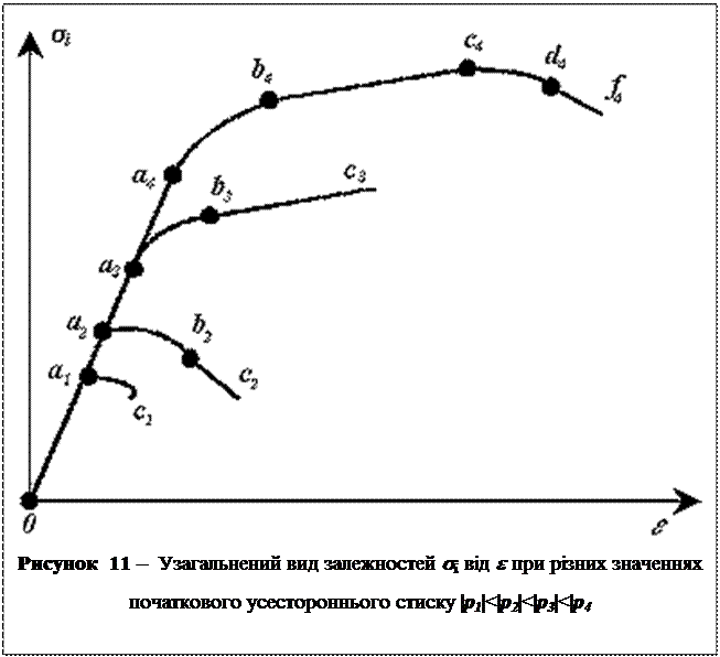 Закономірності деформування порід в умовах нерівномірного усестороннього стиску досліджувало багато вчених (Байдюк, Шрейнер, Сеїд-Рза, Співак). Розглянемо результати цих досліджень. Результати випробувань мають вигляд залежностей
