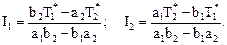 Решая эти уравнения относительно I1 и I2 (предполагая выполнение условия a1/b1