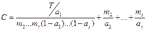 где: у0,i – нагрузка, обслуживаемая mi выходами i-го звена; аi – нагрузка, обслуживаемая одним входом i-го звена. Выражая из последнего выражения m, и подставляя его в формулу для С, имеем: