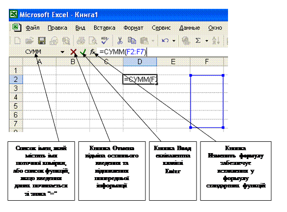 Рис. 3. Основне вікно табличного процесора Рядок формул (рис.4).
