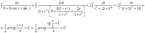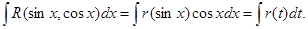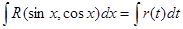 Для преобразования функции R в рациональную используется подстановка t = tgx. Тогда Пример.