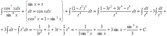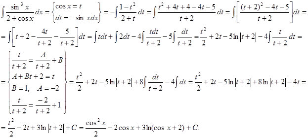 По аналогии с рассмотренным выше случаем делается подстановка t = cosx. Тогда