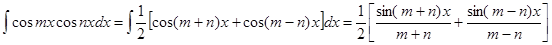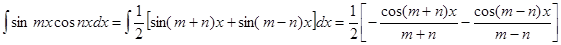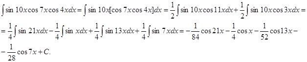 Интеграл произведения синусов и косинусов различных аргументов.