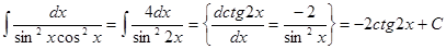 Иногда при интегрировании тригонометрических функций удобно использовать общеизвестные тригонометрические формулы для понижения порядка функций. Пример.