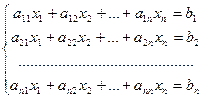 Примеры: 1. 2. 3. Условия существования и количества решений линейной системы будут изучены в дальнейшем, а пока рассмотрим способы нахождения единственного решения системы, в которой число уравнений равно числу неизвестных: Пусть