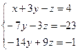 Примеры: 1. Решим методом Гаусса систему Вычтем из второго уравнения удвоенное первое, а из третьего – первое, умноженное на 5. Получим: