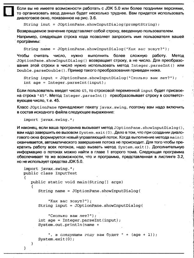 //Детальніше про введення-виведення даних описано в книзі «Khorstmann_Key.Java_2_Bibliotek 1» ст. 86+. /*~~~~~~~~~~~~~~~~~~~~~~~~~~~~~~~~~~~~~~~ 13)Final - Присвоює подальшим змінним значення констант. Урок 3_05. 14)14.3f - число з плаваючою точкою float - треба завжди дописувати вкінці "f" or "d", якщо тип double. 15)'\\' - вивести 1 косу риску. '\"' - вивести лапки. 16)3000000000000000000L - буква "L" в кінці числа вказує, що це саме число, а не помилка запису. 17)\b - стирання попереднього значення. Повернення на 1 назад. Детальніше в уроці 3_05. 18)'\u0065' - вивести значення в шістнадцятковій системі числення. 4-значне. І це = 0х65 19)\n - переведення на наступний рядок (ентер) у коді. 20)System.out.println(""+b1+b2); - лапки на початку виведення означають, що потрібно вивести саме в символьному форматі. А То якщо так не написати, то комп може додати коди символів, записаних у змінних b1 and b2(присвоєні користувачем) і видати число, замість символів). 21)\t - табуляція. 22)\а - Предупреждение (звонок). 23)\f - Перевод страницы. 24)% - залишок від ділення цілих чисел. b%5 це залишок по модулю від цілочисельного ділення b/5. 25)a+=4 = a=a+4; Аналогічно для операцій +,-,*,/,% - діє +=,-=,*=,/=,%=. 26)(k1=5), int s1=2*++k1; - це цілочисельна змінна s1,якій присвоюється значення 2*на число k1(5) збільшене на одиницю, тобто 2*6=12, k1=6. 27)(k2=5), int s2=2*k2++; - це цілочисельна змінна s2,якій присвоюється значення 2*k2,після чого k2 збільшується на 1, тобто s2=2*5=10,k2=6. 28)a++ = a=a+1; b-- = b=b-1; 29)Ієрархія операторів, булеві оператори - урок 3_07. 30)double y=Math.sqrt(x); - змінній з плаваючою точкою розширеного типу double y присвоєно значення функції кореня квадратного з x. Функцію викликано з класу математичних функцій Math. 31)Math.Pow - функція піднесення до степеня. Важливі функції класу math - описані в уроці 3_07 наприкінці. 32)double xx=Math.pow(Math.PI,Math.E); - піднести до степеня Е число Пі. 33)int n2=(int) f1; - змінній 2 присвоємо переведене з float v int значення змінної f1. Можлива втрата точності при даній операції. 34)Math.round - функція округлення до більшого. Наприклад 2.6 = 3. 35)String s2="afgjh"; - присвоєння змінній типу стрінг певного набору символів. s3="" - пуста строка. 36)Визначення довжини рядка і виведення певного символа із рядка - урок 3_09. 37)int i=Integer.parseInt(n); - записує в змінну і значення рядка n. ~~~~~~~~~~~~~~~~~~~~~~~~~~~~~~*/ 38)Про діалогові вікна можна глянути в уроці 3_13. 39)При хибній умові в while цикл не виконається взагалі, а при хибній умові в do while цикл відбудеться 1 раз. Це дуже важливо. Бо в 2 випа- дку навіть при невірній умові цикл виконається 1 раз і значення його може внести помилки в результат. 40)switch - оператор переключення. Урок 3_17. 41)case - оператор виконання конкретної частини світча. 42)default - описує те, що буде виконуватись, якщо switch переключив на таке значення, яке не співпадає ні з 1 case; 43)continue - оператор припинення поточного циклу. 44)BigInteger sum=BigInteger.valueOf(0); - присвоюємо великому числу сум велике число 0. (велике число=підвид типів чисел); 45)Про функції великих чисел також описано в 3_20. 46)int[] a1=new int[10]; - масив цілих чисел а1. 47)int[] a2={1,2,3,4,4,3,2,1}; - заповнюємо масив одразу при створенні. 48)System.arraycopy(a2,2,a4,3,3);- копіює елементи починаючи з другого з масиву a2 у масив а4 на місце починаючи з 3. К-сть копійованих еле- ментів - 3. 49)Arrays.sort(a1); - cортує масив a1; 50)Arrays.binarySearch(a2,i1); - шукає у масиві a2 елемент зі значенням i1; - але це треба в циклі for записати. 51)int[][] a1= { {1,2,3,4} {11,12,13,14} {21,22,23,24} } - двовимірний масив, який задано прямо. 52)int[][] a2=new int [5][5]; - ініціалізований масив розміром 5х5; 53)a2[i1][i2]=(int) (Math.random()*100); -заповнити масив а2 рандомними числами від 0 до 100;