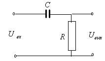 Рисунок 3.16 – Амплитудно – фазовая характеристика реального дифференцирующего звена Пример реального дифференцирующего звена приведен на рисунке 3.17. Чтобы убедиться, что приведенное звено является реальным дифференцирующим звеном, составим его дифференциальное уравнение. На основании второго закона Кирхгофа имеем: