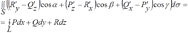 Формула Стокса в векторной форме: поток ротора ВП через поверхность S равен циркуляции вектора поля вдоль контура L, ограниченный поверхностью S.