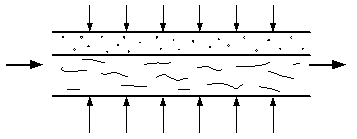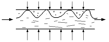 Для горизонтального течения пароводяной смеси характерна неравномерность распределения паровой и жидкой фаз по сечению трубы. Пар более легкий, поэтому его содержание становится больше у верхней образующей, воды - у нижней. Степень ассиметрии потока зависит от скорости, диаметра трубы, величины давления. Рассмотрим три различных режима течения.