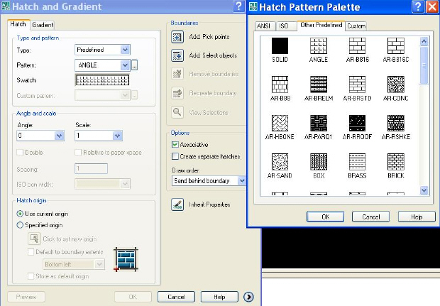В диалоговом окне HATCH AND GRADIENT раскрывающийся список TYPE содержит три элемента: