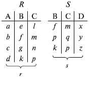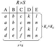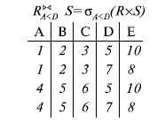Реляционная база данных, разработанная Э.Ф. Коддом (Е. F. Codd) в 1970 г., – это конечный набор конечных отношений (таблиц) вида рис. 10.3,б. Над отношениями можно осуществлять различные алгебраические операции. Тем самым теория реляционных баз данных становится областью приложения математической логики и современной алгебры и опирается на точный математический формализм. Каждое отношение имеет свое имя; столбцы отношения соответствуют тому или иному атрибуту, имеющему имя и значения. Элементы отношения, соответствующие одной строке, составляют кортеж отношения (рис. 10.3, б). Арность кортежа – число значений атрибутов в кортеже, т.е. число атрибутов в отношении [ 7, 13, 31 ]. Схема отношения – список имен атрибутов вместе с именем отношения; так, для рис. 10.3,а схема отношения – ТРАНЗИСТОРЫ (p, Iк max, Pк, Cк), для рис. 10.3, б – ИМЯ ОТНОШЕНИЯ (A, B, С, D). Домен – множество значений атрибутов (в том числе и только одного атрибута – один столбец). Вообще столбцы не обязательно являются поименованными, а порядок следования элементов в картежах также несущественен. Существует три подхода к анализу реляционных БД и формированию запросов в них: реляционная алгебра, реляционное исчисление на переменных-кортежах и реляционное исчисление на переменных-доменах. В реляционных базах данных основные операции – включение, удаление, модификация и запрос данных – применяются к кортежам и доменам. Для осуществления операции включения данных задаются новый кортеж и отношение, в которое он должен быть включен. Тогда значения нового кортежа образуют ключ файла включения данных. При удалении данных должны быть заданы отношение и значения атрибутов, образующих ключ удаляемых кортежей. При модификации данных задаются отношение, значения атрибутов ключа и новые значения для применяемых атрибутов. Преобразуются ключевые значения в значения полей. К файлу применяется процедура модификации. Запрос в реляционных базах данных может быть сформулирован к одному или нескольким отношениям (таблицам). Например имеется запрос: указать типы всех транзисторов и их Pк, для которых Ск > 15 пФ. Тогда значение атрибута Ск = 15 пФ. Затем на печать выдается новый файл-отношение "Тип транзистора, Рк, β". Могут быть более сложные запросы: например, определить мощности рассеивания транзисторов, для которых β Все эти запросы реализуются с помощью специальных языков манипулирования данными, ряд из которых основан на реляционной алгебре. Основные операции реляционной алгебры приведены в табл. 11.1. В ней даны исходные отношения, результаты операций, а также в ряде случаев теоретико-множественное представление операций. Первые пять операций являются основными, остальные – дополнительные, которые могут быть выражены через пять основных. Объединение отношений R Разность отношений R – S – множество кортежей, принадлежащих R, но не принадлежащих S. Отношения R и S также должны иметь одинаковую арность. Декартово произведение отношений R x S – одна из основных операций по затратам машинного времени при формировании запросов к реляционной БД. При умножении отношений к каждому кортежу первого отношения (R) присоединяется каждый кортеж второго отношения (S) – конкатенация кортежей; при этом отношения R и S могут иметь одинаковую или различную арность. При декартовом умножении арности исходных отношений ск