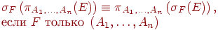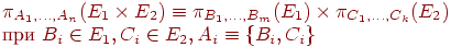 Для осуществления этой стратегии применяются эквивалентные выражения реляционной алгебры, приведенные в табл. 11.2. Законы коммутативности и ассоциативности означают произвольный выбор в очередности соединений и умножений. При перестановках проекции или селекции с декартовым произведением следует обращать внимание на принадлежность тех или иных имен атрибутов к исходным отношениям.