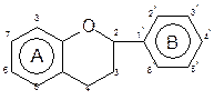 В основе строения лежит структура флавона, который состоит из двух бензольных колец и одного гетероциклического (пиранового).