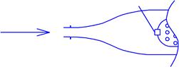 диффузор снизет скорость со 100 до 30 -40 м/с много (, ставим плохо обтекаемое тело, скорость уже норм, но воздуха много. Нужно порциями подавать,Ю изолируем Жаровой трубой Диффузор -расширяющийся канал на выходе из компрессора, в нем скорость потока падает а давление увеличивается. Диффузоры должны удовлетворять требованиям: 1. Иметь минимальные гидравлические потери 2. Иметь минимальную длину 3. Обеспечивать устойчивое поле скоростей и давлений перед входом в жаровую трубу. Классификация: