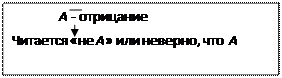 Основой для выполнения операций над высказываниями являются логические связки. Логические связки – это союзы: «и»; «или»; «если…, то»; частица «не»; слова «неверно, что»; «тогда и только тогда,…когда»; «если и только если,…если»; «либо, либо». С помощью этих слов из высказываний строятся другие высказывания, а процедура эта называется операцией над высказыванием. Определение: Отрицанием высказывания А называется высказывание «не А» (неверно, что А), которое истинно, если А - ложно и ложно, если А – истинно. Операцию построения отрицания высказывания также называют отрицанием высказывания. Определение можно оформить с помощью таблицы истинности: