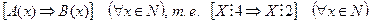 Эта импликация истинна на всей области определения, т.е. Если В(х) логически следует из А(х), то В(х) – необходимое условие для А(х), А(х)- достаточное. условие для В(х). Допускают и другие фразеологии: Из предиката А(х) логически следует предикат В(х), А(х) достаточное условие для В(х), а В(х) – необходимое условие для А(х). Тогда если высказывание: 1) Из А(х) логически следует В(х); 2) Для того, чтобы выполнялось В(х) на множестве Х достаточно, чтобы выполнялось А(х) на множестве Х 3) Для того, чтобы выполнялось А(х) на множестве Х необходимо, чтобы выполнялось В(х) на множестве Х. В нашем примере импликация 1) Из того, что 2) Для того, чтобы натуральное число x делилось на 2 достаточно, чтобы оно делилось на 4. 3) Для того, чтобы натуральное число x делилось на 4 необходимо, чтобы оно делилось на 2. Иногда говорят кратко: делимость на 2 – необходимое условие делимости на 4. Замечание: Если импликация Пусть предикат А(х) и предикат В(х) заданы на множестве Х и пусть их эквиваленцияистинна Это значит, что В этом случае говорят, что предикаты А(х) и В(х) равносильны на множестве Х. Это возможно только в том случае, когда Если Если т.е. предикаты А(х) и В(х) логически следуют друг из друга на множестве Х. Для понятия равносильности предикатов используют знак ~: Если предикаты равносильны, то в этом случае говорят, что они являются, необходимым и достаточным условием друг для друга. Например: На множестве N заданы предикаты А(х):