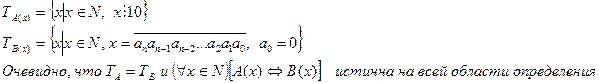 Следовательно, предикаты А(х) и В(х) равносильные предикаты. Это значит: