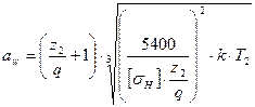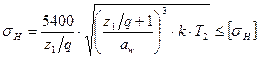 Причины выхода из строя червячных передач: 1. износ зубьев червячного колеса; 2. заедание (схватывание) рабочих поверхностей зубьев; 3. поломка зуба червячного колеса; 4. контактное выкрашивание; 5. перегрев передачи; 6. недостаточная жесткость червяка (прогиб). Основными критериями работоспособности червячных передач являются: износостойкость, прочность, теплостойкость, жесткость. 5.1 Расчет червячных передач на износостойкость. Расчет на контактную прочность совмещен с этим расчетом путем выбора соответствующих контактных напряжений. Расчет контактных напряжений, от которых в основном и зависит износостойкость, проводится по формуле Герца: