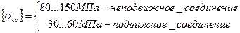 Меньшие значения для чугунных ступиц (80,30). Большие значения для стальных ступиц (150,60). Т.к. все шлицевые соединения стандартные, то размеры подбираются так, чтобы напряжения среза всегда были меньше напряжений смятия. Следовательно соответствующая проверка не нужна.