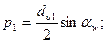Расчет на контактную прочность активных поверхностей зубьев является основным для закрытых (работающих в масле) передач. Экспериментально установлено, что наименьшую контактную прочность имеет околополюсная зона активных (рабочих) поверхностей зубьев. Поэтому расчет контактных напряжений производят для фазы контакта зубьев в полюсе зацепления (рис. 20.32). Прямозубые и косозубые передачи. В расчете полагают, что контакт двух зубьев аналогичен контакту двух цилиндров с радиусами p1 и р2, равными радиусам кривизны эвольвент зубьев в точке контакта, т. е. для расчета зубьев используется задача Герца о контакте цилиндров (см. гл. 14). Использование такой модели оказывается оправданным, так как размеры площадки контакта малы по сравнению с размерами зуба. Максимальное контактное напряжение Для получения расчетного соотношения выразим величины, входящие в равенство (19.3), через силовые и геометрические параметры передачи. Нормальное удельное усилие wn связано с расчетной удельной окружной силой зависимостью [см. формулу (20.20)]*