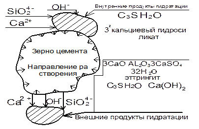 Стадия 2. На этой стадии происходит гидратация ионов, и образуются основы гидратных фаз, т.е. тех фаз, которые в дальнейшем способствуют образованию субмикрокристаллов.