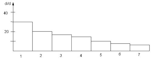 По оси абсцисс отложим суммарное количество дефектов готовых ИМС, по оси ординат – относительную долю числа дефектов от рассматриваемого. 1 – припайка кристалла (26%); 2 – герметизация (22%); 3 – разладка выводов (19%); 4 – фотолитография (18%); 5 – осаждение диэлектрика (7%); 6 – диффузия (5%); 7 – металлизация (3%). Суммируя последовательно высоту всех столбиков гистограммы, получим ломаную кумулятивную прямую, которую называют кривой Парето.