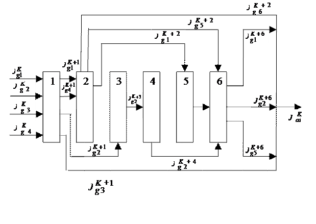 Рис. 23. Структурная связь операций технологического процесса Преобразование параметров g1, g2, g3, g4, g5, g6 можно представить следующим образом: