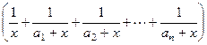 ◀ Пусть D = | aij |; D¢ = | aij + x |. Разложим D¢ в сумму двух определителей относительно первой строки, каждый из них на два относительно второй строки и т.д. Слагаемые, содержащие более одной строки элементов x, равны нулю.