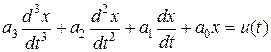 Рис. 1.4 Математическая модель устройства состоит из уравнения а), описывающего электрическую часть; уравнения б) для механической части и выражения в), устанавливающего взаимосвязь этих частей: а) Уравнения получены при следующих упрощающих предположениях: магнитная система устройства не насыщена и сухое трение отсутствует. Для получения ММ в форме уравнения вход-выход нужно исключить промежуточные переменные i (t) и F (t). При этом уравнение, связывающее входную и выходную переменные, будет иметь вид линейного дифференциального уравнения третьего порядка: