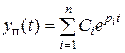 где pi – корни характеристического полинома A (p) = A (D) при D=p. В таком виде формула для y п(t) справедлива, когда все характеристические корни различны. В случае кратного корня pi, соответствующий ему коэффициент Ci в формуле будет полиномиальной функцией времени (степень полинома меньше коэффициента кратности корня на единицу). В общем случае эти корни будут к о мплексными (pi= α i + j b i), а общее их число (с учетом кратности) равно n. При этом парциальная составляющая для корня pi имеет вид Таким образом, для устойчивости ЛДЗ необходимо и достаточно, чтобы все корни характеристического уравнения A (p)=0 были «левыми», т.е. имели отрицательные вещественные части и принадлежали левой полуплоскости. Устойчивость является важным свойством динамических систем и понимается, как их способность возвращаться в первоначальное (невозмущенное) состояние после прекращения действия возмущений. Таким невозмущенным состоянием может быть, например, некоторый установившийся (вынужденный) режим, описываемый каким-либо частным решением уравнений динамики системы. В частности, это может быть статический (опорный) режим, относительно которого производилась линеаризация. Характеристические корни { pi } определяют свойство устойчивости (или неустойчивости), но зависят они сложным образом от значений коэффициентов полинома A (p). Аналитический вид этих зависимостей можно найти только в простейших случаях для полиномов не выше второго порядка. В более сложных случаях численные значения корней можно определить численными методами. Но для исследования устойчивости нужно знать не значения корней, а их положение относительно мнимой оси комплексной плоскости. В математике известны правила и условия, позволяющие судить о «левом» расположении корней полиномов непосредственно по их коэффициентам. Их называют алгебраическими критериями устойчивости. Наиболее известными из них являются: а) необходимый критерий устойчивости Стодолы; б) критерий Рауса; в) критерий Гурвица и критерий Льенара-Шипара. а) критерий Стодолы устанавливает необходимое условие устойчивости в виде требования положительности (или отрицательности) всех коэффициентов полинома A (p). При невыполнении условий этого критерия, ЛДЗ либо неустойчиво, либо находится на границе устойчивости. б) критерий Рауса имеет табличную форму: по специальному алгоритму заполняются клетки таблицы Рауса и проверяются знаки элементов ее первого столбца. Положительность всех этих элементов гарантирует «левое» расположение всех корней полинома и, следовательно, и устойчивость ЛДЗ. в) критерий Гурвица имеет аналитическую форму и более удобен в применении. Здесь предварительно составляется матрица Гурвица размером nxn по следующему правилу: вектор коэффициентов (an–1, an–2, …, a 1, a 0) располагается по главной диагонали, а затем заполняется нижний треугольник матрицы по столбцам (вниз от диагонального элемента) в порядке возрастания индексов коэффициентов. Верхний треугольник заполняется так же, но вверх от диагонали и в порядке убывания индексов. Элементы с несуществующими индексами равны нулю. Затем для полученной матрицы записываются и вычисляются все главные диагональные миноры D1, D2, D3, …, D n -1, D n. Если все эти миноры (определители Гурвица) положительны, то ЛДЗ устойчиво. В противном случае оно либо неустойчиво, ли